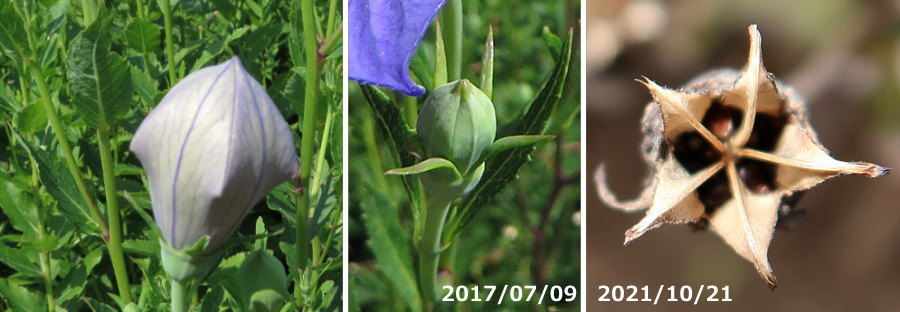 キキョウ 風船のような蕾 / 5裂した果実 東京都薬用植物園にて![]() |