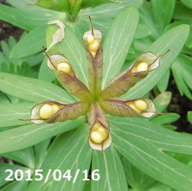 袋果 ( ふつうは2~3個 ) と こぼれ落ちる種子![]() |