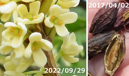 ギンモクセイ 銀木犀 ( モクセイ科モクセイ属 ) キンモクセイ 金木犀 / ウスギモクセイ 薄黄木犀 |