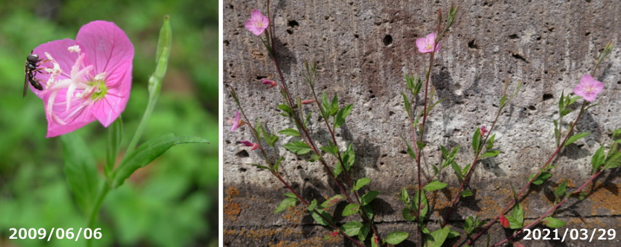 他に、アカバナ Epilobium pyrricholophum に似ているから、「 アカバナ 」 をつけたとする説もあります。 属名:Oenothera 、酒 oinos + 野獣 ther を語源とする ふつう 「 根にブドウ酒様の香気があり、野獣が好む 」 と説明される。 種小名:rosea 、バラ色の という意味。 2025.12.18.New 参考書籍等 「 沖縄の身近な植物図鑑 」、「 日本帰化植物写真図鑑 」 、「 ワイド図鑑 身近な山野・雑草 」、 「 野草図鑑 さくらそうの巻 」、かぎけん花図鑑 https://www.flower-db.com/ja/flowers/oenothera-rosea 国立環境研究所 侵入生物データベース https://www.nies.go.jp/biodiversity/invasive/DB/detail/80020.html |